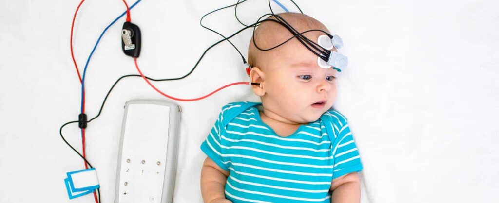 Viene effettuato applicando tre fili sul capo del tuo bambino con del nastro biadesivo e si inserisce una piccolissima cuffia nell’orecchio.