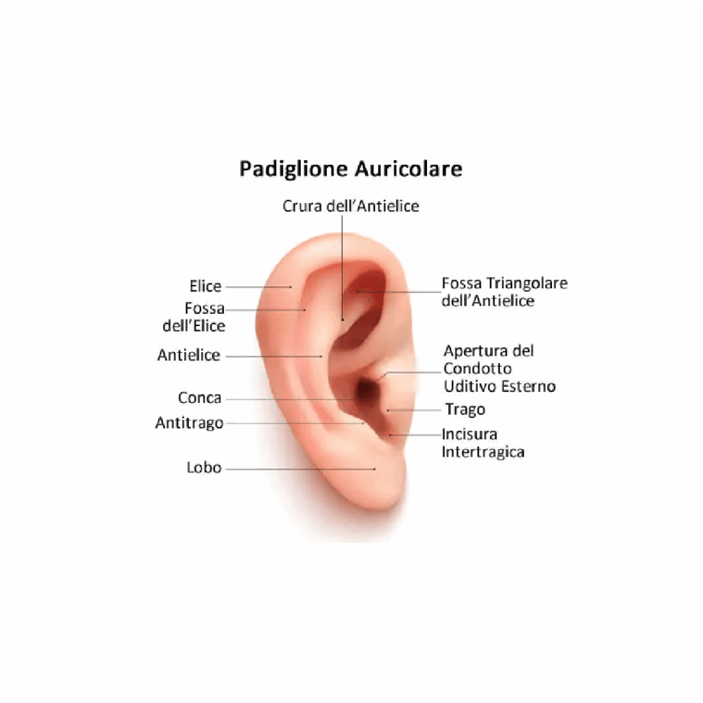 Padiglione auricolare: rappresenta il nostro canale di ricezione e codifica dei suoni. É la parte più esterna e visibile dell’orecchio.