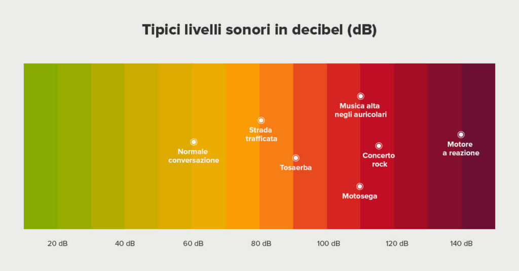 Alcuni esempi di livelli decibel che danneggiano il nostro udito: